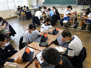 6年生がタブレットPCを使って先日行った修学旅行のまとめをしています。写真を貼ったり、資料で調べたことを打ち込んだり、自分の思ったこと、感じたことなどを書き留めたりして、一生の思い出の足跡とそこから得た「学び」をプレゼン風に作っています。紙に書くことから、パソコンで作りデータを共有することへ…。これも一人一台、タブレットPCがあるからこそできることです。保護者の方には、オープンスクールで披露する予定です。